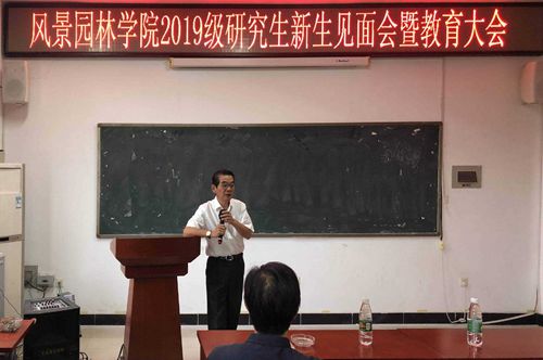 2019年9月19日上午9点,风景园林学院2019级研究生新生见面会暨入学教育大会在至美楼二楼研究生教室举行。学院院长、博士生导师沈守云教授,院党委书记马振山,副院长胡希军教授以及全体研究生指导教师导师出席。2019级共88名新生全员参加了会议。