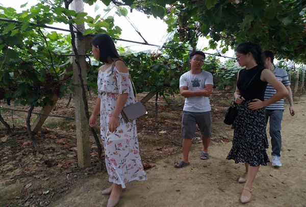 下午,我们来到了当地比较有代表性的农民专业合作社——春荷水果种植专业合作社,在种植的葡萄大棚内,该农业合作社负责人向我们介绍当前的生产状况,以及该合作社的低碳农业的发展状况。