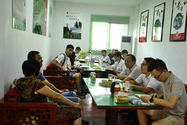 下午,在县茶叶办副主任瞿新华的带领下,博士团一行到张家界万宝山茶业有限公司参观学习。