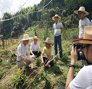 在扶贫工作队长刘国强和指导老师李泽、陆俊的带领下,队员们实地考察了村内黑老虎种植基地,并对村产业腊肉和烧酒进行调研。初步了解到种植户在种植技术上存在问题,主要是育苗技术亟待改进。两位老师针对种植户提出的黑老虎原生苗变异系数大,扦插、嫁接等方法存活率低的问题,并对农户进行指导和演示。当地食品加工、制作无统一标准、规模小的现状,指导老师建议对肉制品的熏制、酒的酿造工艺进行相应的改进,在丰富产品内涵的基础上,提升包装和宣传档次,为特色产品的销售增添砝码。
