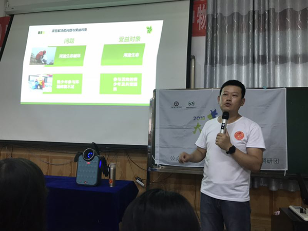 上午10时,实践团队队长钟婉婷宣布活动正式开始。她以公众对环保新闻的关注度为切入点,为大家简要介绍了湘阴县湿地保护的现状、存在的问题以及公众参与环保活动的相关成果。湘阴爱心志愿者团队队长王闻鸡分享了志愿者参与环保活动的经历和其带领公益小天使们在东湖公园开展“民间小河长”的环保经验。随后,实践团队队员舒媛就湿地保护的法律、法规与政策开展宣讲课堂,主要内容为洞庭湖湿地保护方面的相关法律、法规知识,以及公众参与的模式与方法。在活动的问答环节,实践团队与现场的观众进行了友好互动,就湘阴县湿地保护现有的法律、法规政策方面的问题进行了解答,同时也号召大家积极参与环境保护活动。最后,钟婉婷对本次活动进行总结,对参与活动的社区代表、建筑企业代表、公益小天使、中学老师、河长办、林业局等单位代表表达了诚挚的谢意并组织大家合影留念。