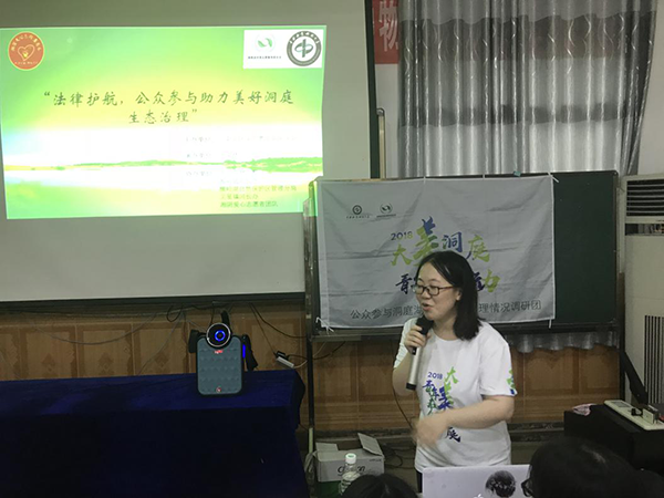 7月14日,中南林业科技大学政法学院、商学院研究生实践团队在湘阴县城关中学多媒体会议室举办了以“法律护航,公众参与助力美好洞庭生态治理”为主题的环境保护法律知识宣讲活动。