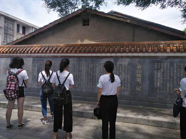 据悉,青山岛是世界上仅存的三座渔村之一,约有200多户1000余人长年居住在岛上。在途经青山岛抗日烈士陵园时,林业局的工作人员带领团队成员们阅览了“青山惨案”的纪实故事,并瞻仰了青山抗日死难军民纪念碑。