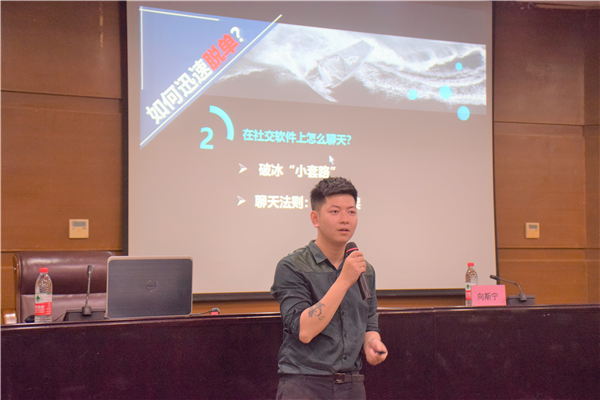 向斯宁从自身的创业经历来引入为何要讲关于情感的课程。向斯宁表示,我们需要认识爱情,解读爱情,全面了解爱情。培养成熟、健康的爱情观,树立良好的形象,有助于在以后的生活中正确对待爱情,理解爱情。向斯宁通过身边的事例和一些破冰小技巧,向大家全面解剖爱情是什么,在面对爱情时该如何去做。他谈到,男性的思维和女性的思维是有差异的,在面对和处理情感问题时需要换位思考。