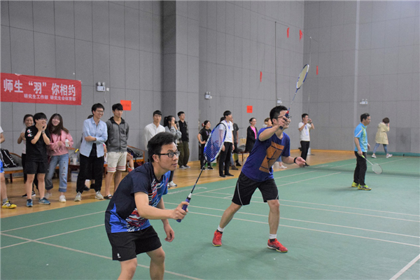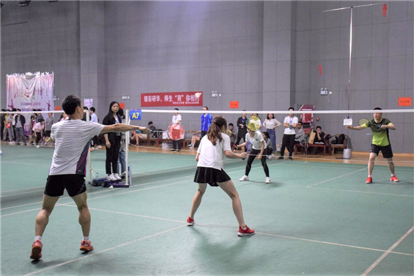 18日19时,我校研究生师生羽毛球团体赛八进四淘汰赛在体艺馆羽毛球馆举行。