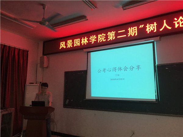 4月22日,风景园林学院“树人论坛”系列学术讲座成功举办。论坛以毕业生交流为主题,四位优秀研究生主讲人分别分享了他们攻读学位期间的论文写作、公务员备考、创业及学习和设计竞赛的一些经验技巧与心得体会。