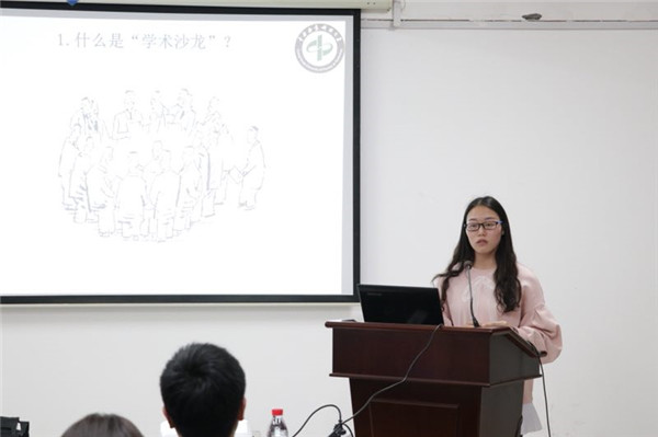 张婉作了《我和科研有个约会》的报告,她首先表达了自己对学术沙龙这个平台的认知,正因为学术沙龙的互动性、开放性,大家能够畅所欲言等优点,同学们能通过这种方式更好的收获知识。她介绍了自己与科研“约会”的历程并与同学们分享了自己论文写作时的辅助工具以及撰写论文的技巧和发表论文的经验。