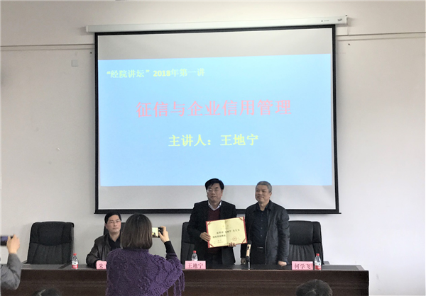3月27日下午14时,2018年“经院讲坛”第一讲在文科楼南1305开讲。此次报告邀请了中国人民银行长沙中心支行副行长王地宁博士主讲。学校纪委书记何学飞,经济学院院长朱玉林、副院长陈学军,金融教研室主任袁怀宇等领导老师出席,经济学院全体研究生聆听了本次讲座。