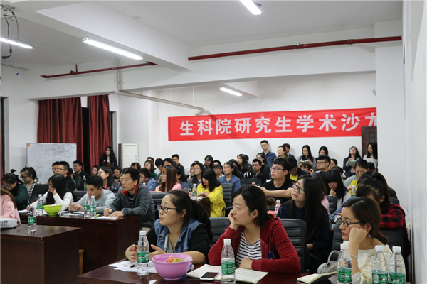 为打造相互学习进步的平台,营造交流分享的科研氛围,2017年11月3日晚7点,生命科学与技术学院于南方林业生态技术国家工程实验室907举办了第二期研究生学术沙龙——《如何做好研究生毕业论文开题》。我院博士生导师蒋丽娟教授、研究生辅导员段酬苍、优秀硕士生代表裴亚蒙、褚磊、刘文和生科院、商学院研究生参加活动。