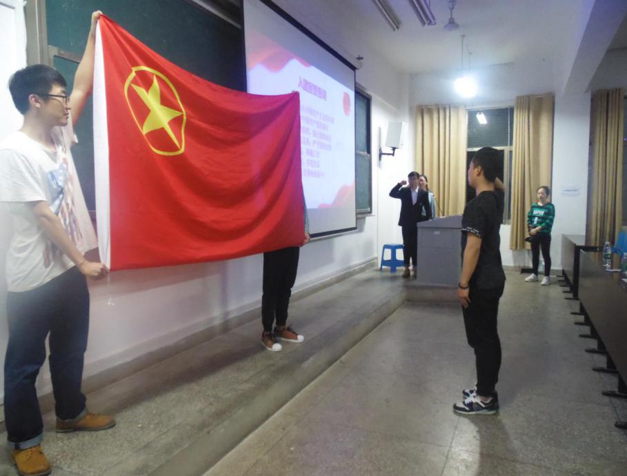 首先,刘梓健同学宣布大会开幕,同时对此次出席的老师表示热烈的欢迎。 接着,所有研究生团员集体佩戴团徽、全体起立,奏唱团歌,重温入团誓词,重新感受入团宣誓仪式的庄严、光荣和喜悦。随后,16级硕士6班团支书张嘉作为宣誓人代表带领所有研究生团员宣读誓词。