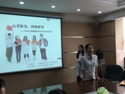5月18日,中南林业科技大学“心灵阳光,同绽研华” 研究生心理健康月开幕式在研究生院三楼会议室举行。研究生工作办公室刘艳老师、研究生会干部、研究生团委干部以及各班班长、心理委员参加了开幕式。会议由研究生团委心理部石洋主持。