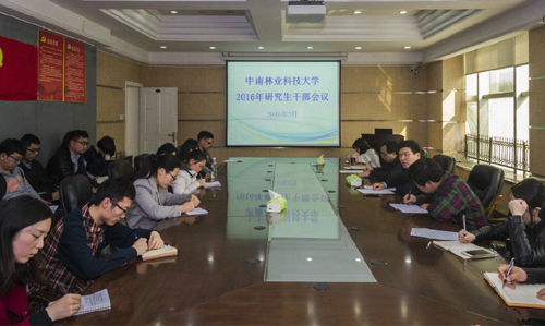 3月1日下午,中南林业科技大学2016年研究生干部会议在研究生院三楼会议室召开。研究生院党委书记卢兆银、党委副书记蒋炳春出席会议,校研究生会、研究生团委干部参加会议。会议由研究生工作办公室陈亮老师主持。