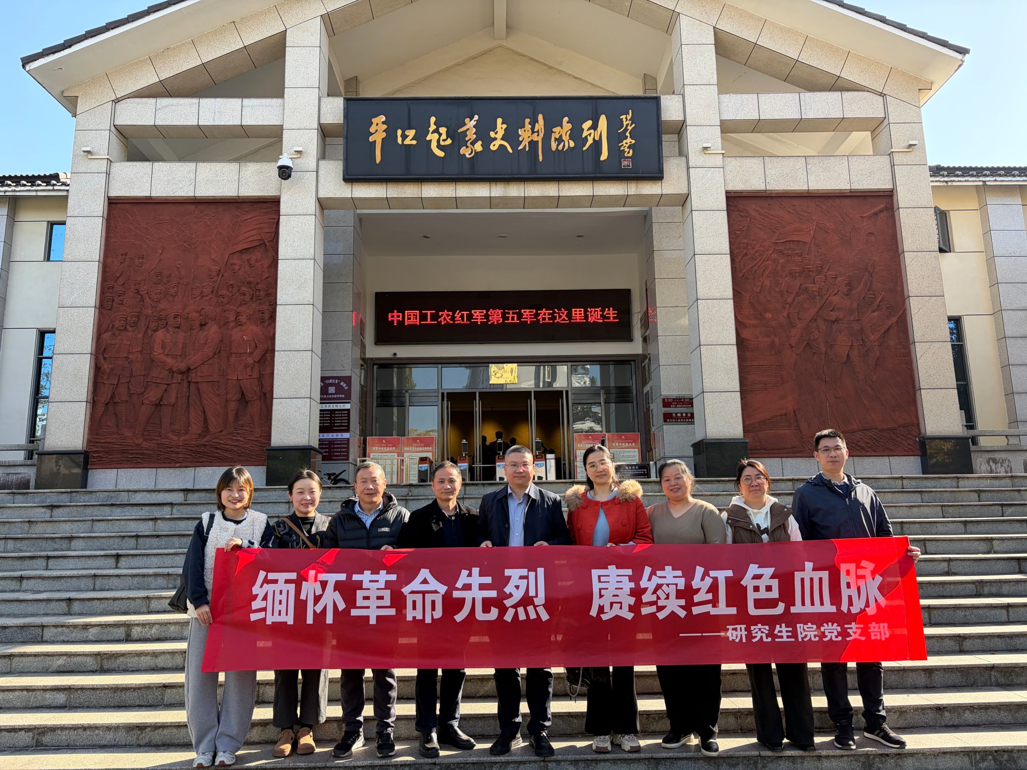 为深入贯彻落实全面从严治党要求,传承红色基因,强化党性修养,近日,研究生院党支部与学科建设与发展规划处党支部联合组织全体党员赴革命老区平江,开展了一场沉浸式的红色主题党日实践活动。作为全国闻名的将军县,平江拥有平江起义纪念馆与湘鄂赣革命根据地纪念馆两大重要红色地标,它们不仅是国家级爱国主义教育示范基地,更承载着深刻的警示教育意义与不可替代的革命传统教育价值。
