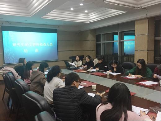 2018年10月16日晚7点至9点,研究生院副院长蒋洁霞对研究生会学术部的15同学进行了开展检查2018年秋季研究生毕业(学位)论文答辩情况的工作培训。