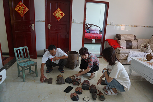 7月28日,团队成员在新宁县城拜访了省级非物质文化遗产竹根傩面的传承人唐光旭老先生,并与老先生进行了深度交谈,了解到36面竹根傩面分别来自于不同的文化背景,如梅山教、夜郎文化、上古传说、民间人物等,都有其独特的特性。图/文:周慧梅