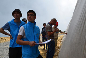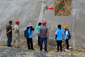在了解了风力发电的运营模式后,实践团又咨询了关于山体滑坡的治理措施及成效并进行了实地考察。山体滑坡的治理措施包括:挂网客土喷播(适用于石质上边坡);植生袋生态防护(适用于石质下边坡);栽种灌木+喷播植草(适用于路肩和风机平台)。草种采用多年生黑麦草、高羊茅、白三叶、刺槐、马尾松等。随后调研团跟随工作人员前往西晃山,观察了用于治理山体滑坡的草种的生长情况。