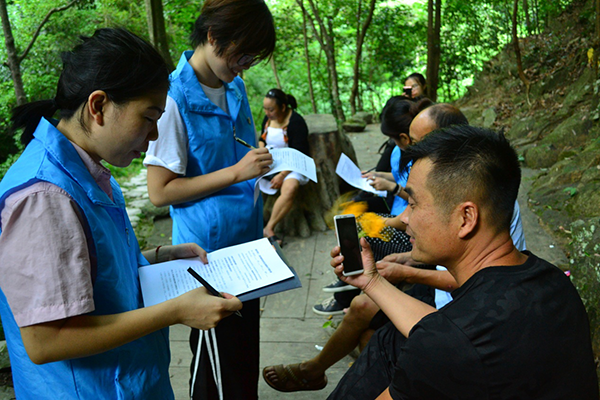 下午2时,调研团队对三道坑镇的自然环境进行初步了解,并进行了游客问卷调查,问卷内容包括游客进行乡村旅游的频率,来三道坑景区的次数及对田园综合体了解程度等。