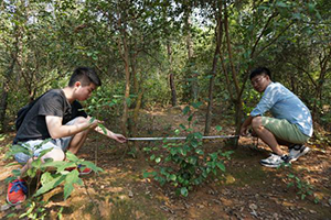 烈日当空,翻越山间崎岖小路,实践团抵达了一位种油茶果树的农民家并得到该户村民的热情接待。村民表示油茶果的产量和收益为每年有500-600多公斤,能带来3000多元的收入。由于有些天然油茶果树长在比较陡峭的山区,而有些油茶果树高度较高,难以采摘,有时会采用竹杠打果的方式进行采摘。人工种植的油茶树和天然的油茶树的区别是人工种植的油茶树经嫁接技术繁殖产量更高,天然的油茶果产出的油味道更香。目前油茶果压榨的油有较好的市场,不过也有买家质疑茶油的生产质量问题,可经检测判断压榨的茶油是否为纯天然无污染,所以其质量也就有了保证。