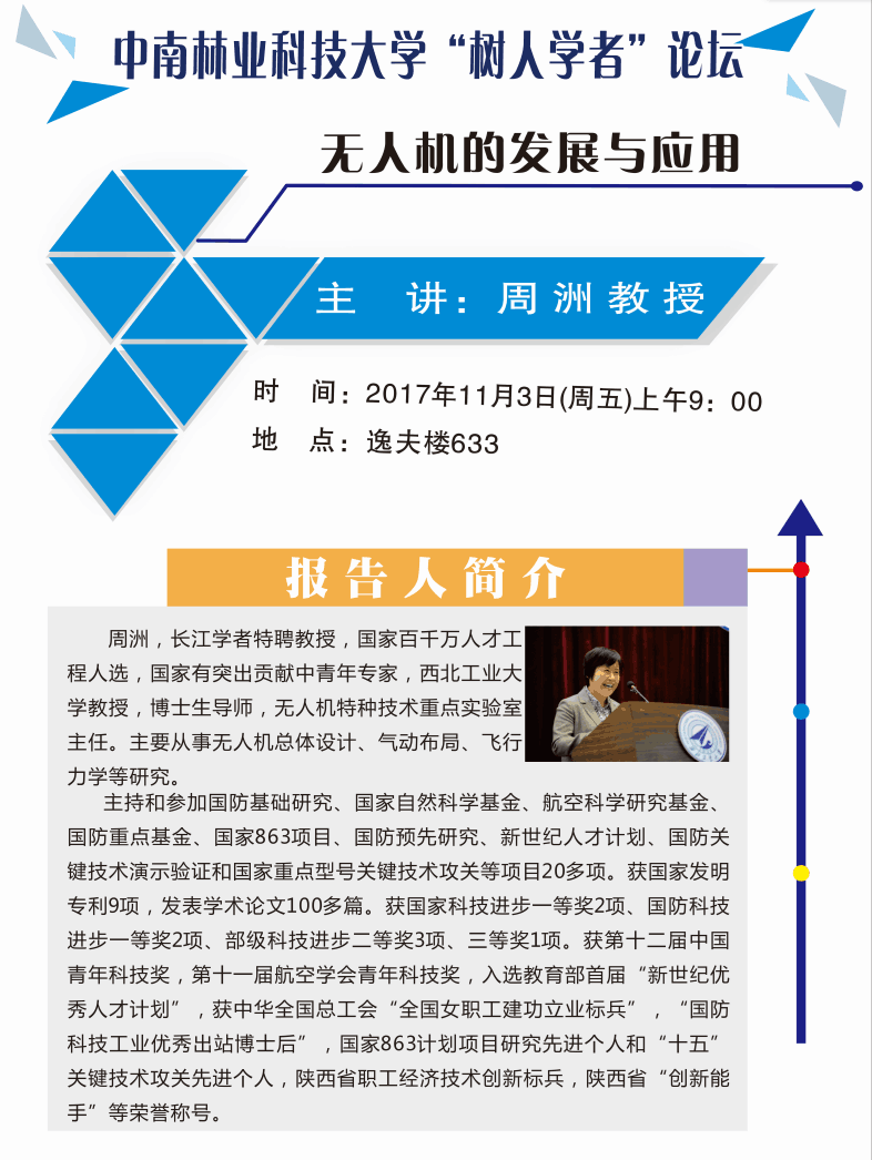 报告题目:中南林业科技大学“树人学者”论坛——无人机的发展与应用