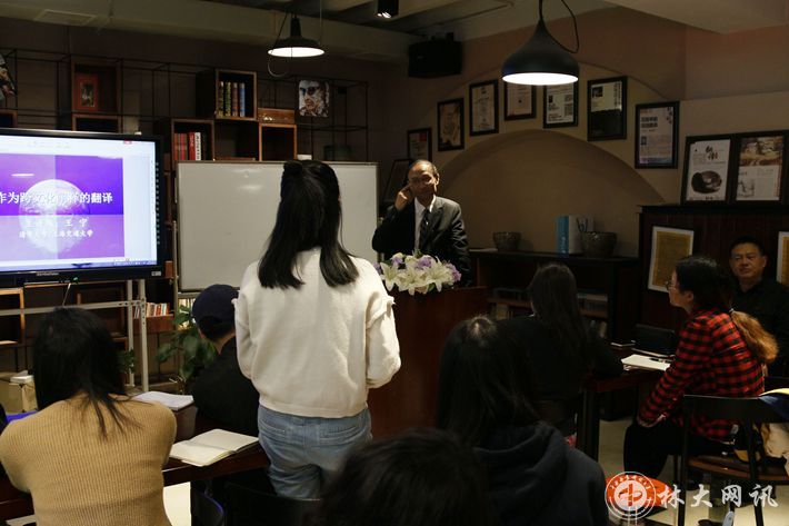 【林大网讯】(文/外国语学院 文雅)11月1日上午,清华大学王宁教授应邀在学校“红楼5语”咖啡吧作了题为“作为跨文化阐释的翻译”学术讲座,外国语学院院长张沉香主持。