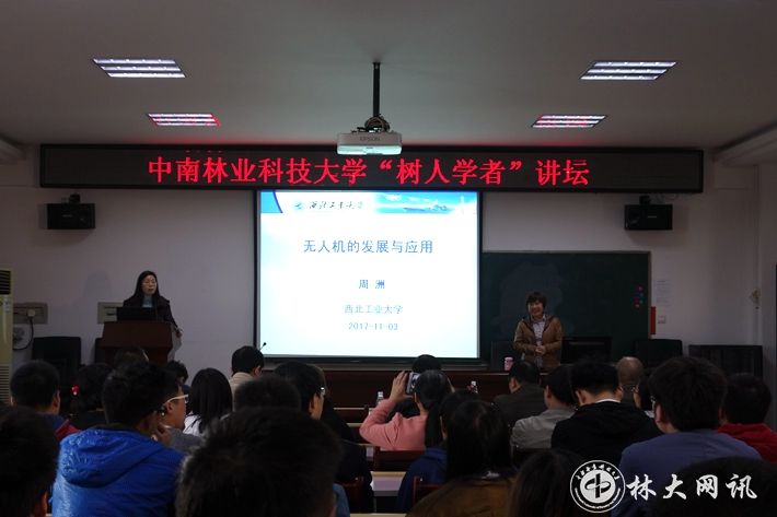 【林大网讯】(文/机电工程学院 李艳萍)11月3日上午,西北工业大学周洲教授应邀在学校“树人学者”讲坛上作了题为“无人机的发展与应用”的主题学术报告。报告会由机电工程学院院长李立君教授主持,机电工程学院教师和研究生、本科生到场聆听。