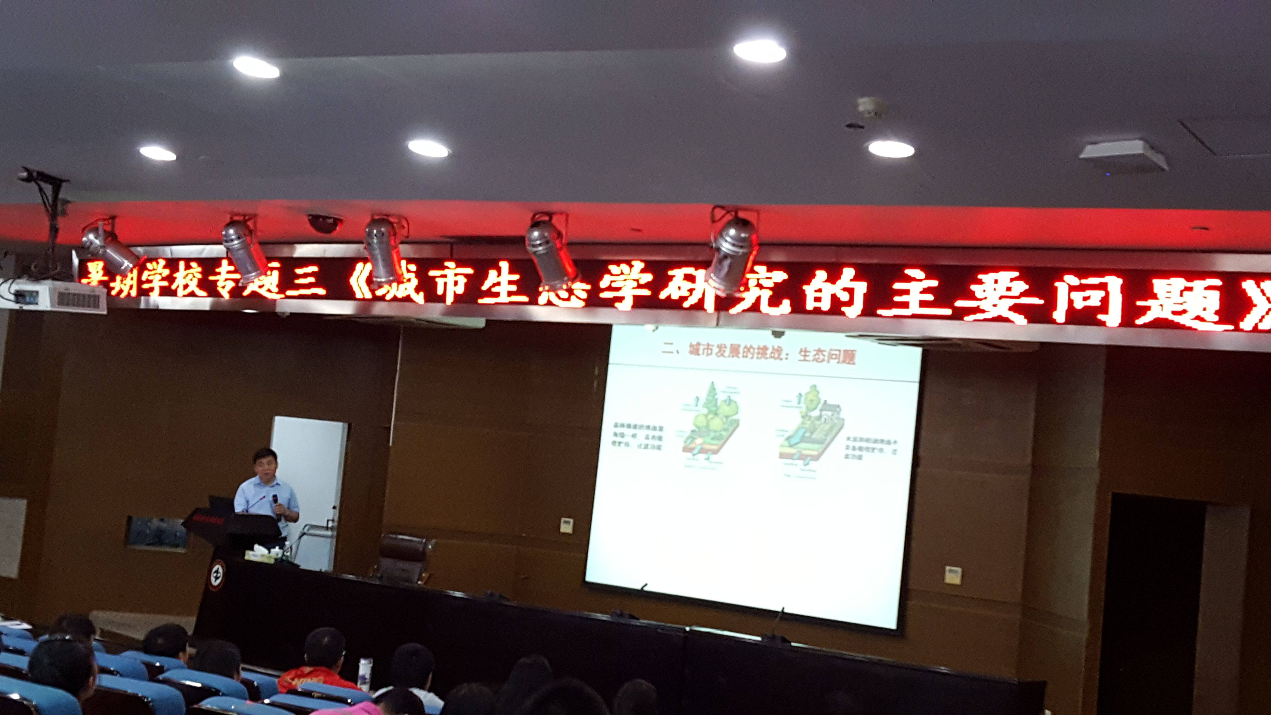 随着城市化进程的不断加速,建设生态型城市,实现城市经济、社会与人口、资源、环境的可持续发展,是人类的共同愿望,也是现代化城市发展的时代潮流和必然趋势。项教授首先从两个故事入手,启发学员门看待事物、解决问题时,要转变看问题的角度与方式,由此引发多元视觉下的城市认识,揭示在生态学的角度下城市为不同生态系统的镶嵌体。报告着重介绍了我国城市发展与城市化进程中的大气污染、城市极端气温、水污染、土壤污染、生物入侵等生态问题,对问题来源做了深入、详细的分析,并就当前我国城市绿色设施建设提出了相关的建设原则。最后项教授结合社会学和经济学知识对城乡一体化建设的原理与功能分区和区划、生态与社会经济的权衡进行了讲解。