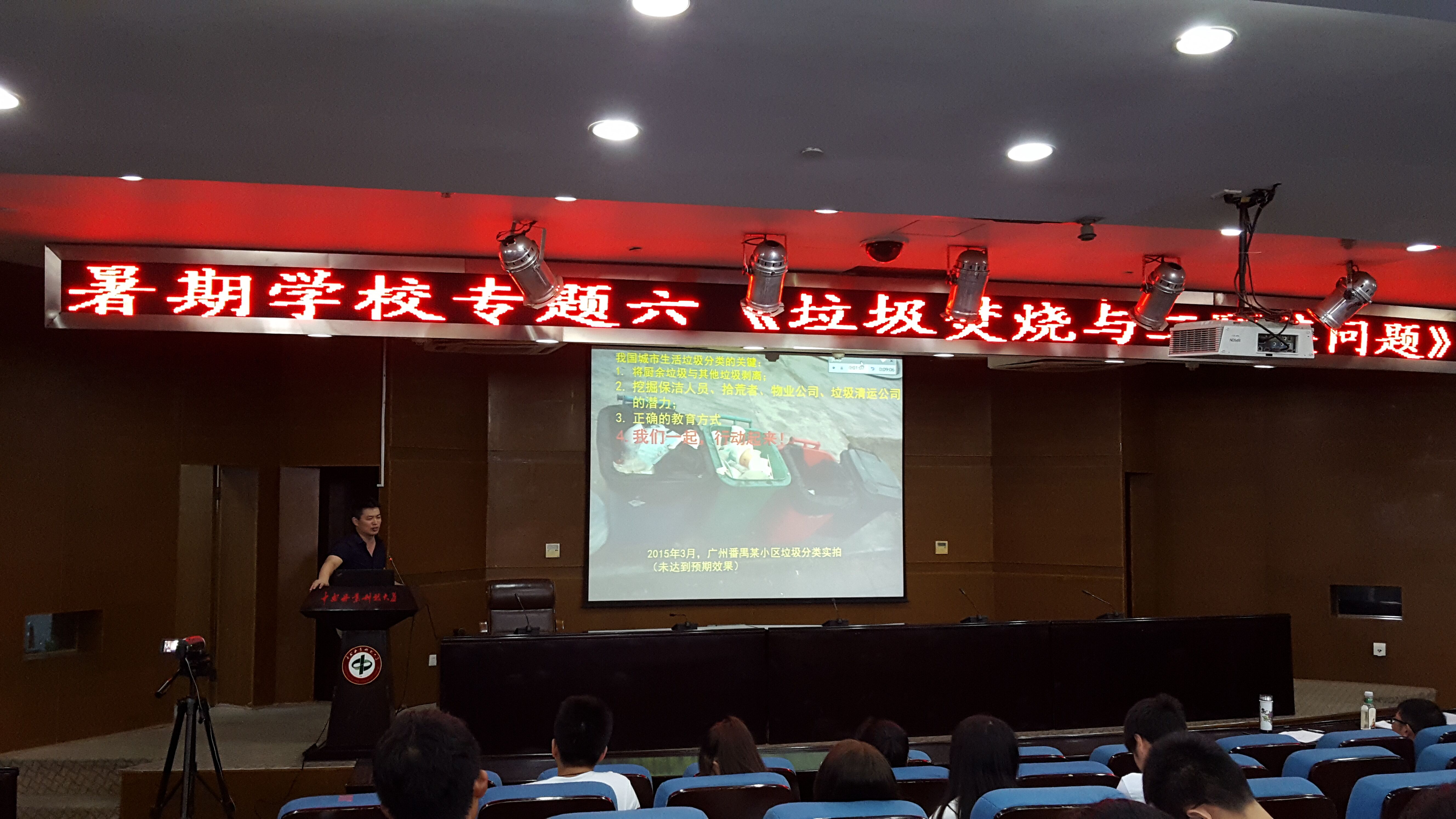 8月14日下午,环境保护部华南环境科学研究所环境与健康研究中心郑晶研究员在中南林业科技大学图书馆报告厅为暑期学校学员们作了题为“城市垃圾分类、焚烧与二噁英问题”的学术报告。报告由生命科学与技术学院方晰教授主持。