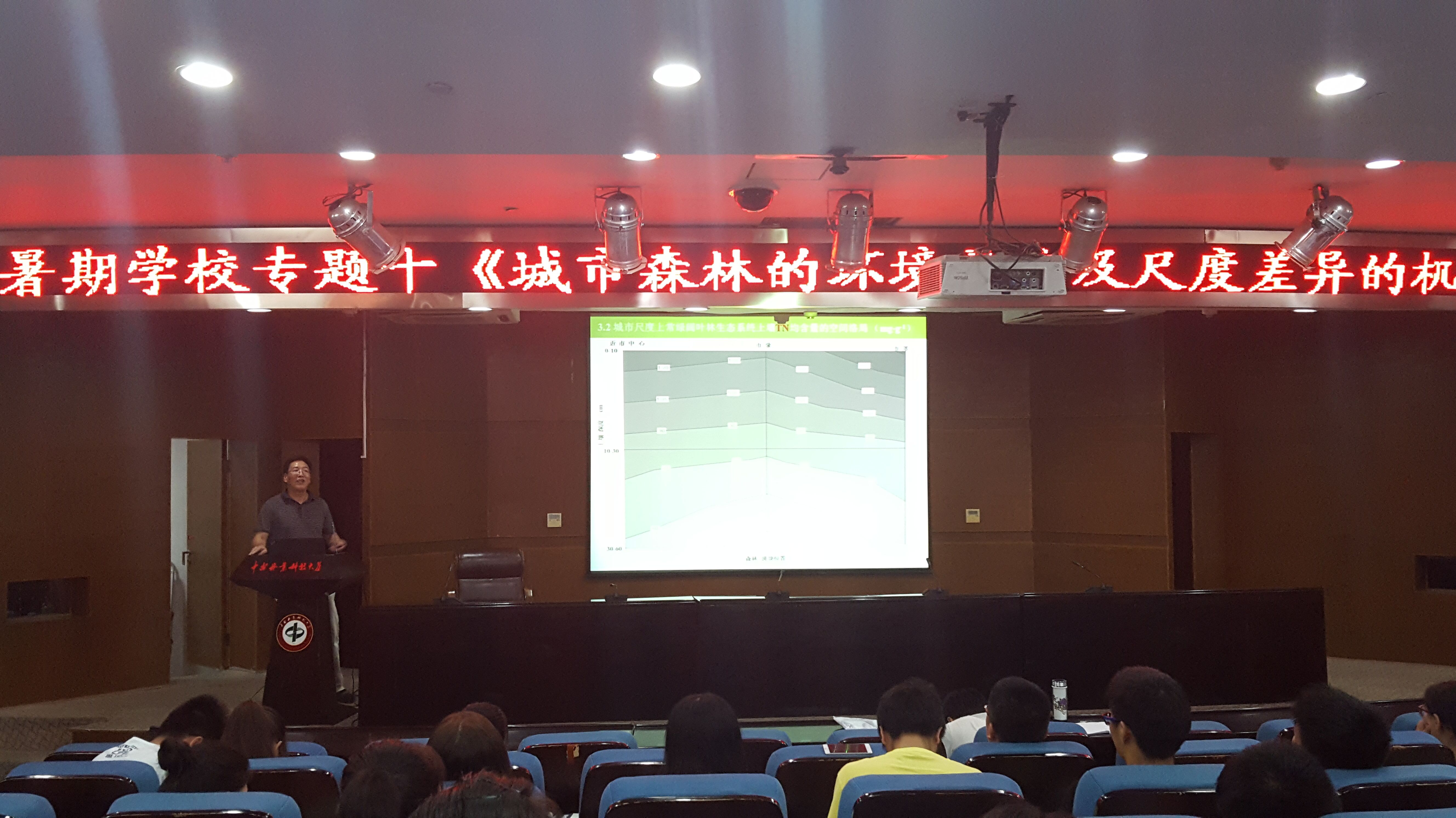 8月16日下午,中国林业科学研究院热带林业研究所研究员陈步峰在中南林业科技大学图书馆报告厅为暑期学校学员们作了主题为“城市森林的环境效应及尺度差异的机制”的学术报告。报告由生命科学与技术学院方晰教授主持。